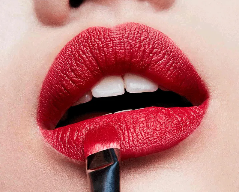 رژلب را به صورت مستقیم یا با کمک یک براش از گوشه لب ها به وسط بکشید و لب ها را با آن کاملا پوشش دهید.