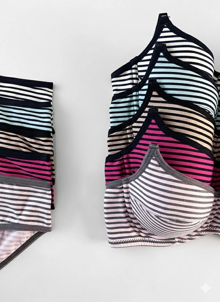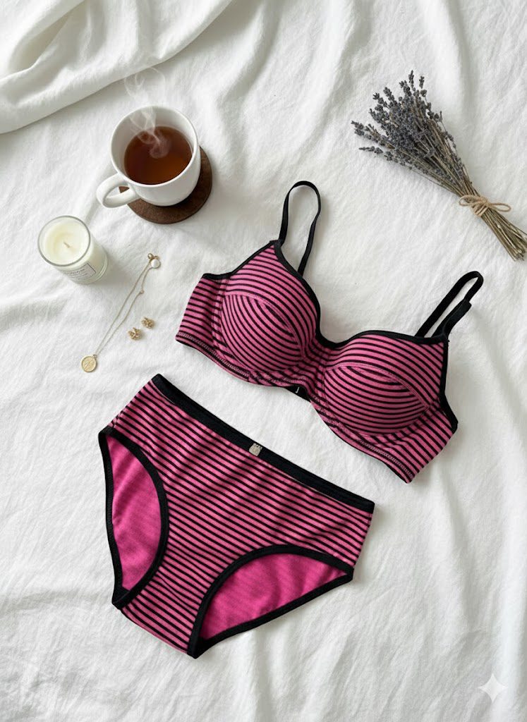 ست شورت و سوتین کاپدار نخی فنردار دانلا با طراحی راهراه و ساختار فنردار، گزینهای ایدهآل برای استفاده روزمره است. پارچه نخی نرم، فرمدهی مناسب سوتین و شورت اسلیپ ست، این محصول را به انتخابی راحت و کاربردی برای مصرف روزانه تبدیل کرده است.