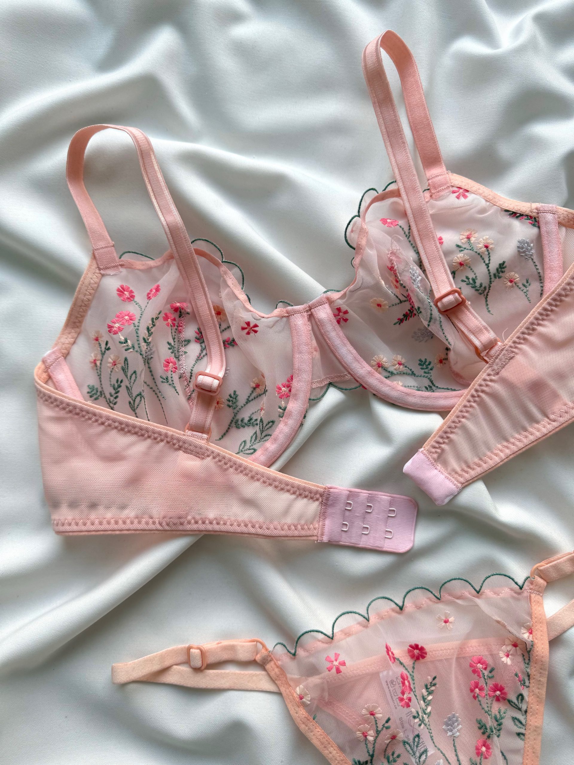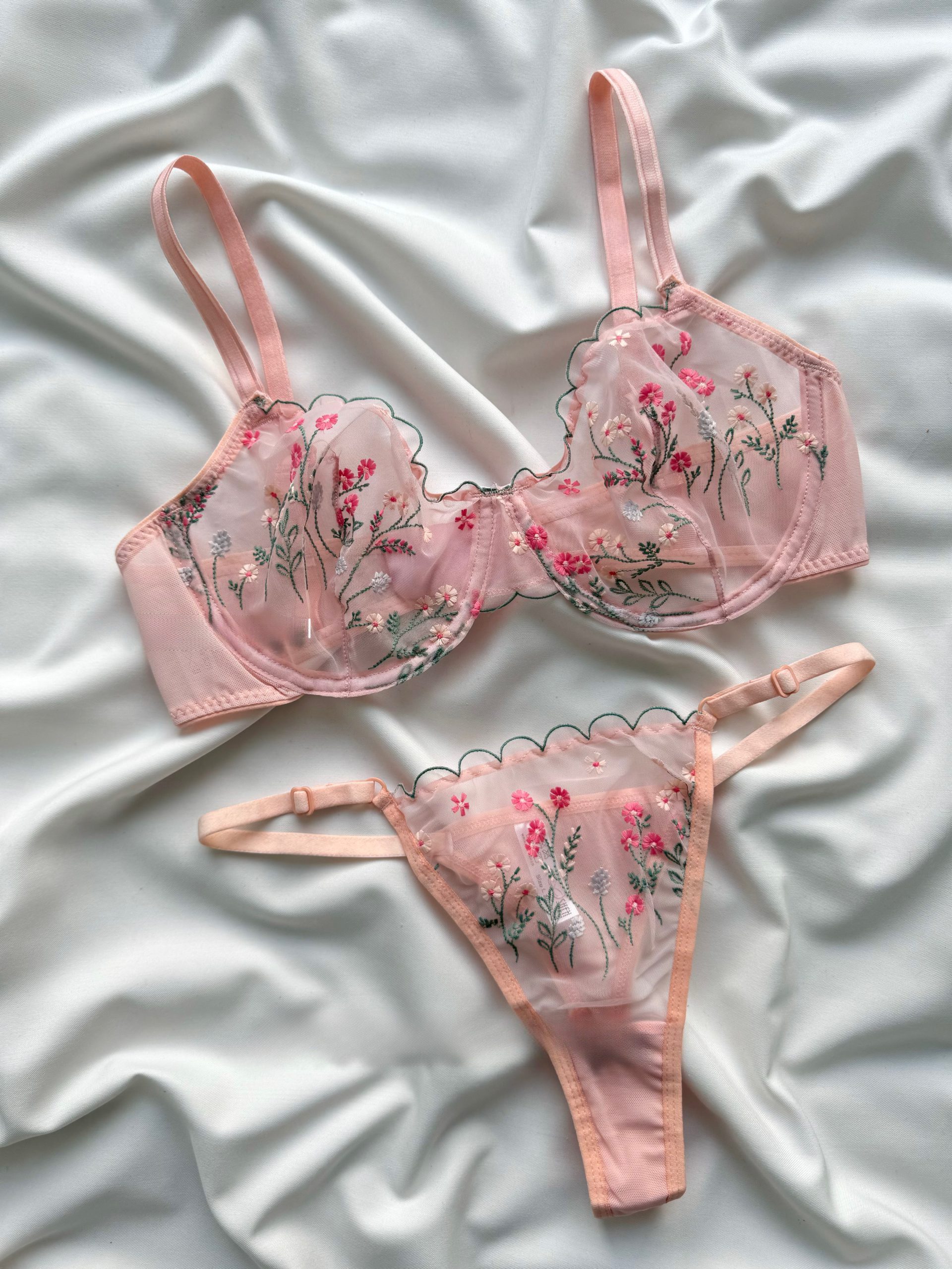 ست لباس زیر تور گیپور فنردار هلویی دلبر دانلا