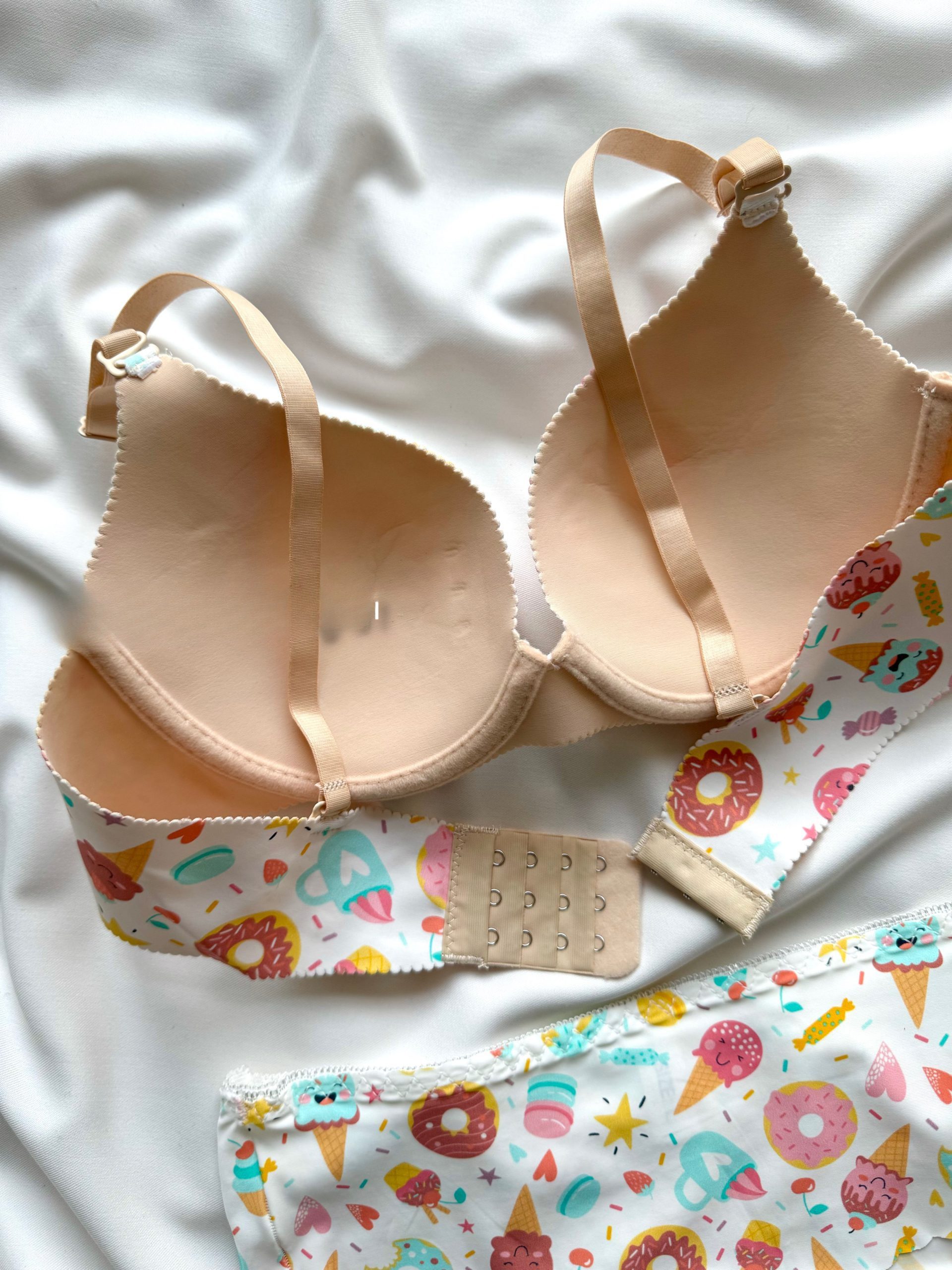 این ست جذاب با طراحی فانتزی و منحصربهفرد، با الهام از فرم دونات، تجربهای متفاوت از لباس زیر را برای شما به ارمغان میآورد. سوتین اسفنجی با کاپ گرد و خوشفرم به همراه شورت همطرح، ترکیبی دوستداشتنی از راحتی و زیبایی را ایجاد کرده که هم برای استفاده روزمره و هم لحظات خاص انتخابی بینظیر خواهد بود.
