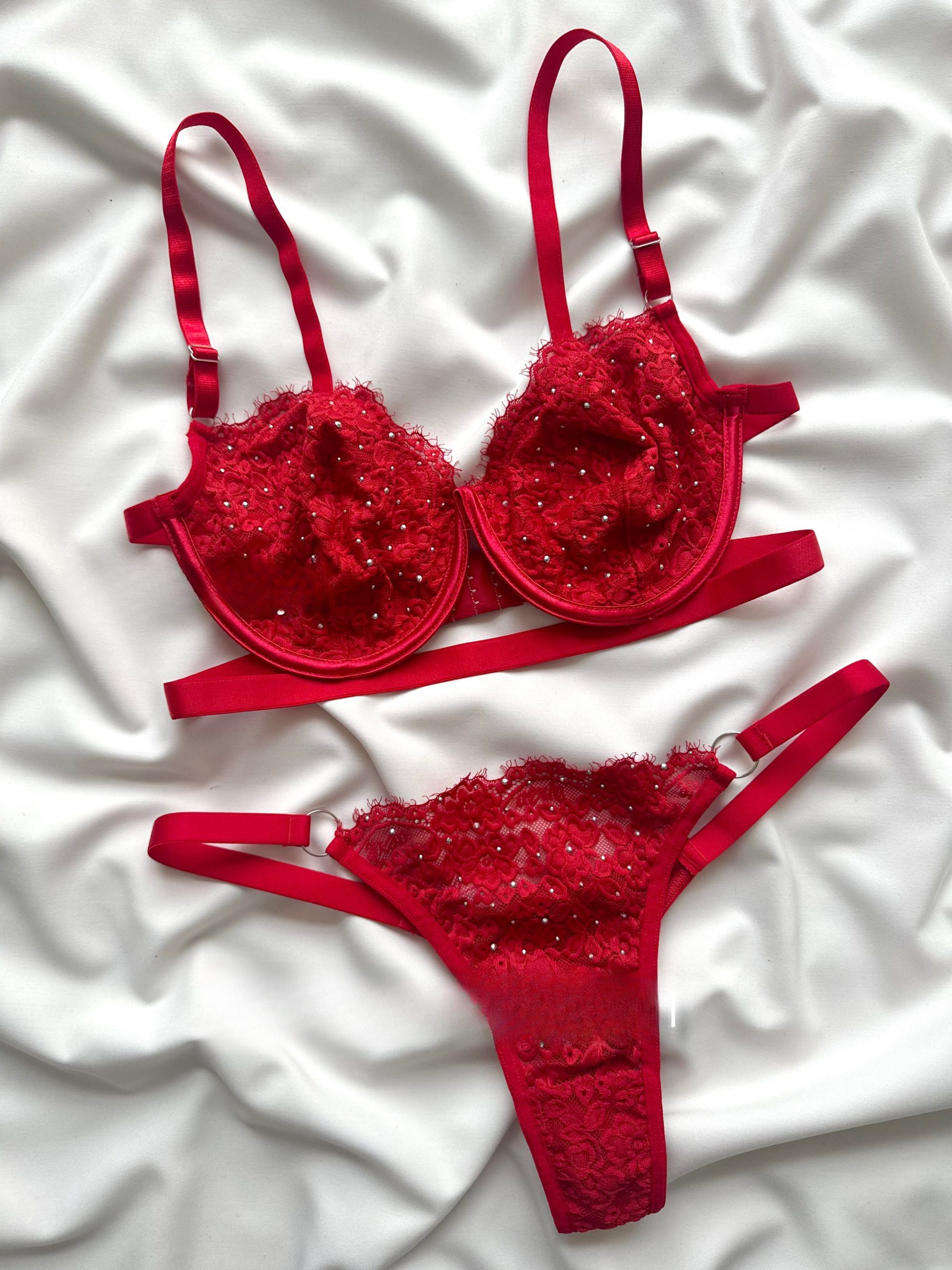 ✅ طراحی خاص و تحریکآمیز: این ست با ترکیبی از بندهای ظریف، نگینهای درخشان و طراحی منحصربهفرد، انتخابی جذاب برای لحظاتی خاص و رمانتیک است.