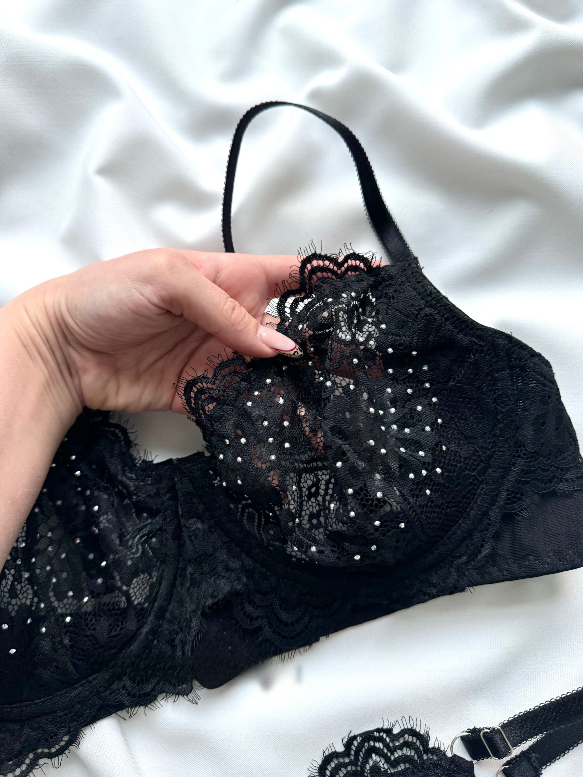 سوتین این ست با فنر داخلی و طراحی دقیق، باعث فرمدهی مناسب به سینهها شده و در عین حال راحتی طولانیمدت را برایتان فراهم میکند. استفاده از پارچه توری نگینی، درخشش خاصی به این ست بخشیده و آن را به انتخابی جذاب برای موقعیتهای خاص تبدیل کرده است.