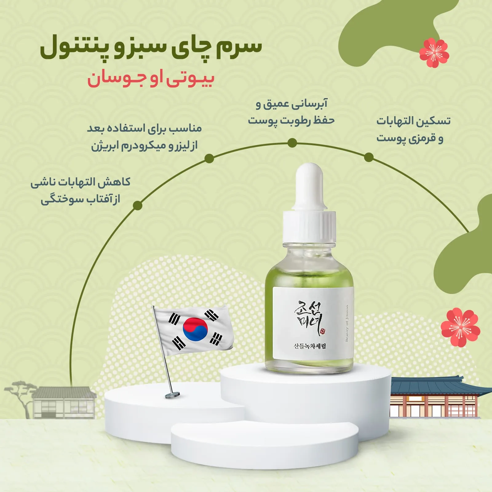 سرم تسکین دهنده چای سبز و پنتنول بیوتی آف جوسان Beauty of Joseon