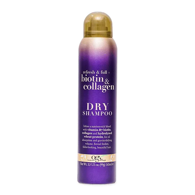 شامپو خشک biotin & collagen او جی ایکس حاوی ویتامین B7، بیوتین، کلاژن و پروتئین هیدرولیز شده گندم است. این محصول با گرفتن چربی اضافی موها، آنها را حجیم تر میکند و به آنها زندهای و شاداب میبخشد.