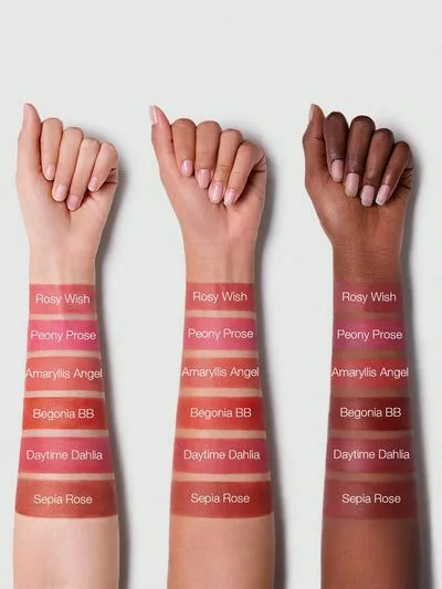 مواد تشکیل دهنده: Begonia BB،Daytime Dahlia، Sepia RoseTALC،MICA، متیل متاکریلات متقاطع، موم سنتزی، DIMETHICONECALISICLISI تری گلیسرید کاپریک، پنتا اریتریتیل تترا ایزواستئارات، پلی متیل سیلس اسکویوکسان، فنوکسی اتانول، کاپریل گلایکول، تری اتوکسی کاپریل سیلان، امینوپروپیل تری اتوکسی لایت (AMINOPROPYL TRIETHOXYSILANE/6+-IRETOXYSITAE) LAKE/CI 15850,YELLOW 6 LAKE/CI 15985,IRON OXIDES/(CI 77492 ,CI 77499,CI 77491),RED 7 LAKE/CI 15850.