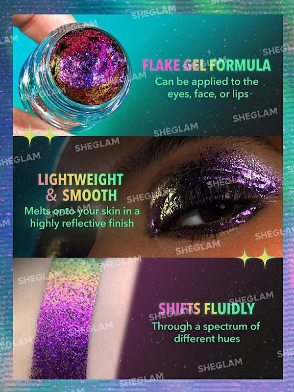 با رنگ‌هایی که با تغییر نور همه‌ی دیدگان را جذب می‌کنند، بازی روشنایی خود را ارتقا دهید. با ژل فلیک چند رنگه جدید ما، عمق و ابعاد را به گونه‌ای منحصر به فرد به گونه‌هایتان یا چشمانتان اضافه کنید که به رنگ نور منبع وابسته است. با طیفی از رنگ‌های شاد، ما رنگ ویژه‌ای برای هر حالتی که دنبال می‌کنید داریم!