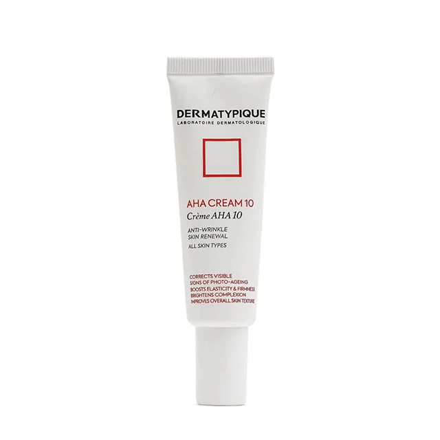 کرم لایه بردار aha 10 درماتیپیک با لایه برداری، افزایش سنتز کلاژن و الاستین و رطوبت رسانی عمقی باعث جوانی، شادابی و شفافیت پوست می شود و علائم پیری زودرس را از بین می برد.
