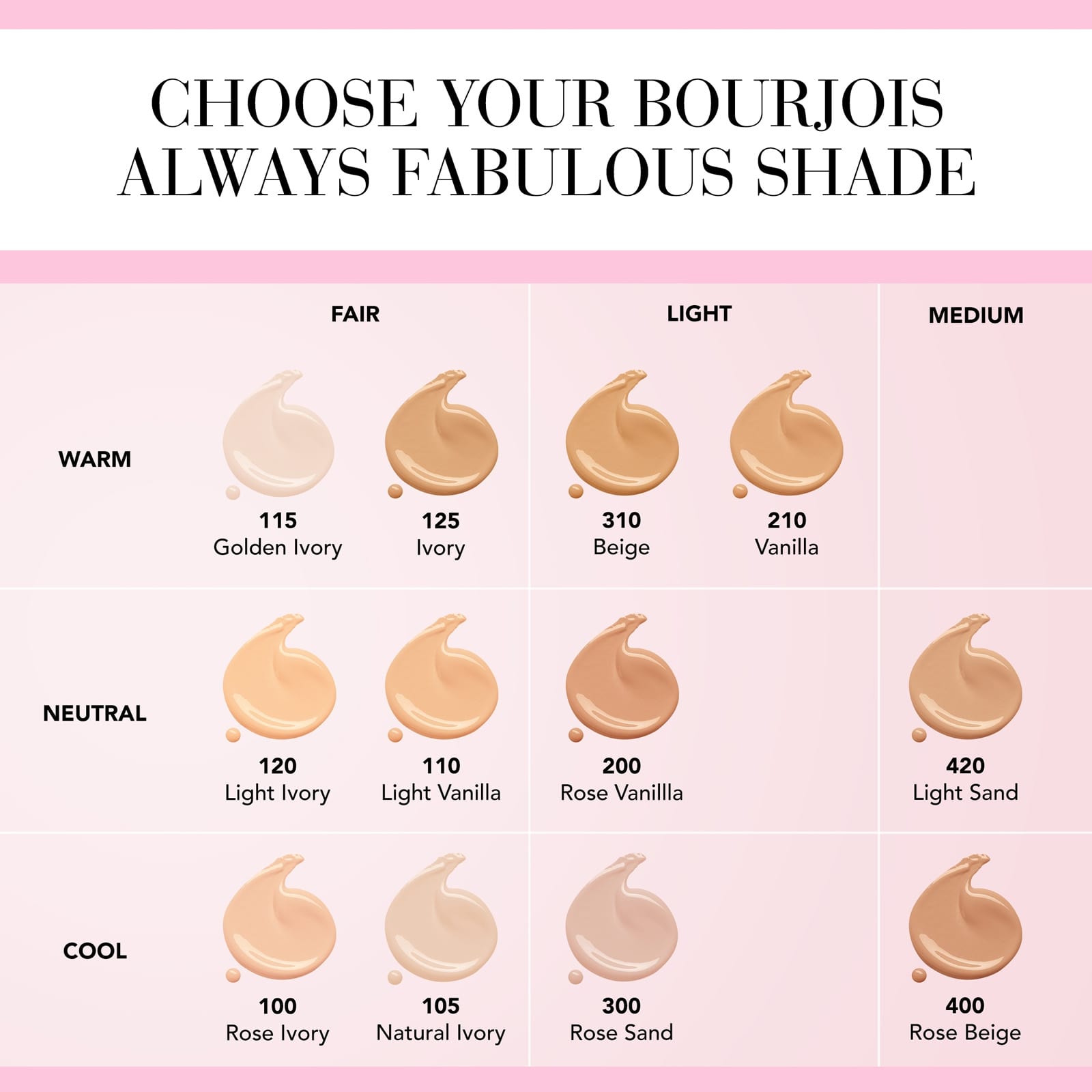 ویژگیهای کرم پودر بورژوآ Always Fabulous رنگ 105 NATURAL IVORY