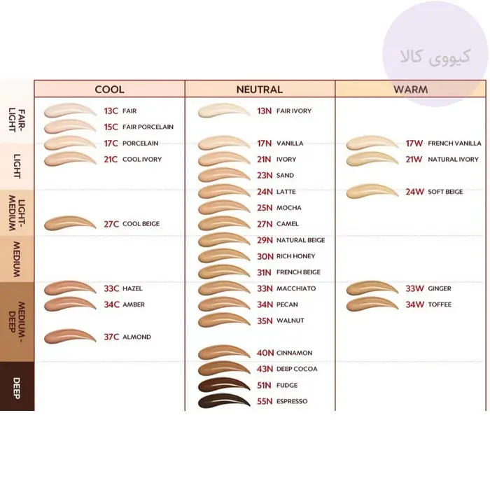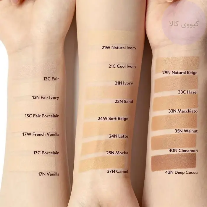 17N- VANILLA ,17W-FRENCH VANILLA ,21C-COOL IVORY ,21N- IVORY ,21N-mini ,21W-NATURAL IVORY ,22N-SHELL BEIGE ,22W-SHEER BEIGE ,23N-SAND ,24N-Latte ,24W-SOFT BEIGE ,25N-MOCHA |
