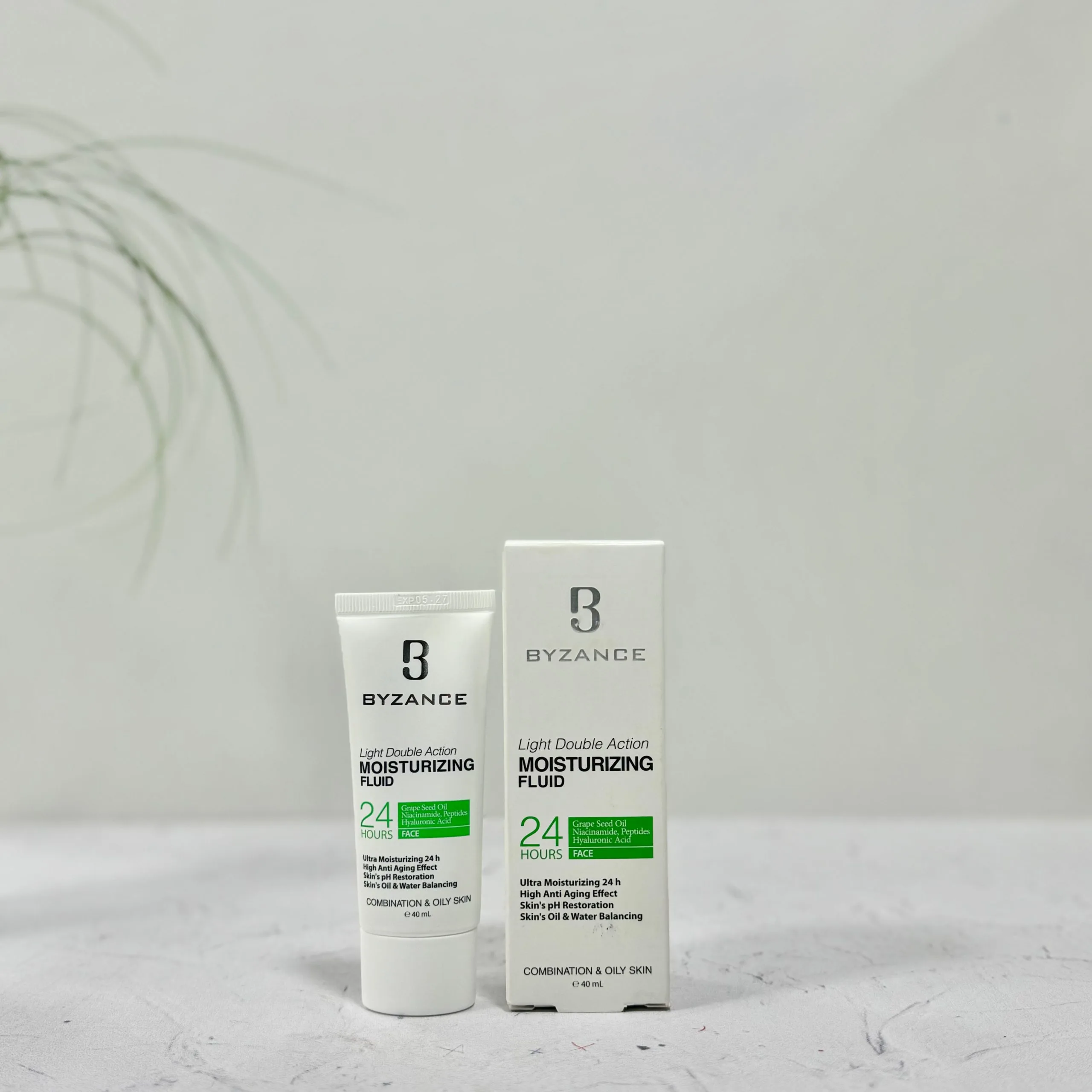فلوئید آبرسان پوست چرب و مختلط بیزانس، یک مرطوبکننده تخصصی برای پوستهای چرب و مختلط است که با ترکیبات مؤثر خود، به تأمین رطوبت پوست بدون ایجاد حس چربی کمک میکند. این محصول با بهرهگیری از هیالورونیک اسید، نیاسینامید، روغن دانه انگور و پپتیدها، علاوه بر آبرسانی عمیق، به کنترل چربی، کاهش جوش و بهبود بافت پوست کمک میکند.