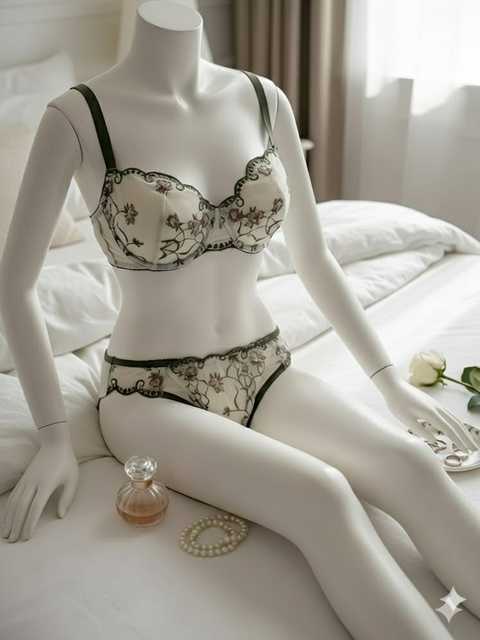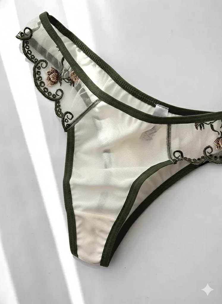 ست لباس زیر گیپوری توری سبز و کرم دانلا