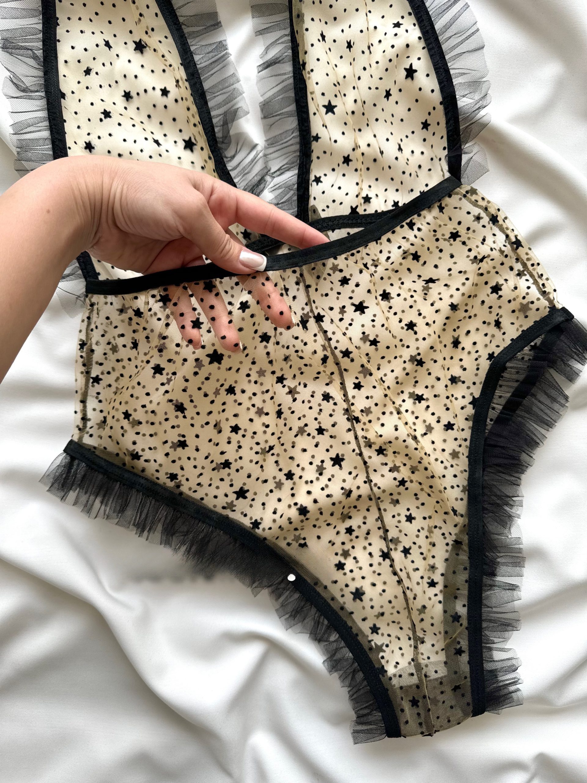 با ست لباس خواب برنزی دانلا، وارد دنیایی از اغواگری و ظرافت شوید. این ست شامل بادی تور شیشهای با طراحی بدننما و نقاب برنزی جذاب است که در کنار هم، استایلی جسورانه و فریبنده خلق میکنند. پارچه شیشهای با بافتی شفاف و لطیف، زیبایی طبیعی بدن را برجسته میکند، در حالی که نقاب برنزی، حس رمزآلود و سلطهگرانهای به ظاهر شما میبخشد 😍