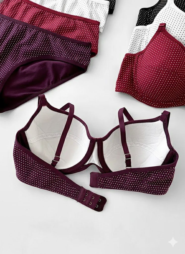 برای خرید ست شورت و سوتین کاپدار نخی فنردار دانلا با طرح خالخال ریز، کافیست سایز مناسب خود را از جدول انتخاب کرده و سفارش را ثبت کنید. این ست انتخابی راحت، بادوام و مناسب استفاده روزمره است.