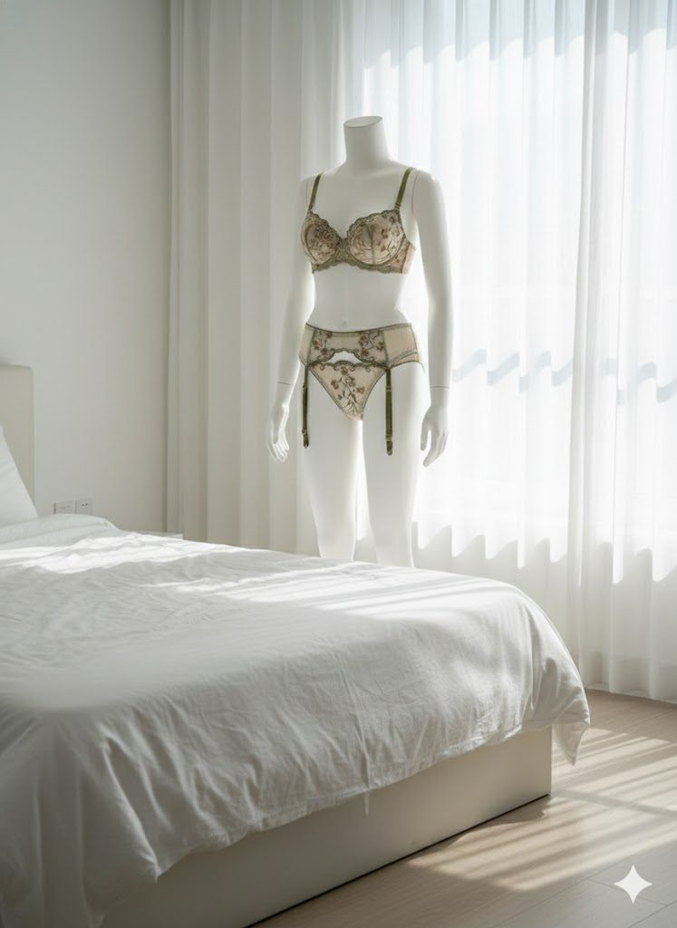 ست سه تکه گیپوری دانلا با رنگ سبز پستهای شامل سوتین فنردار گیپور دوزی شده، شورت بکلس بندی قابل تنظیم و بند جوراب کمری قزندار است. این ست با طراحی جذاب و کیفیت بالا، ظاهر سینهها را خوش فرم کرده و راحتی عالی را فراهم میکند.