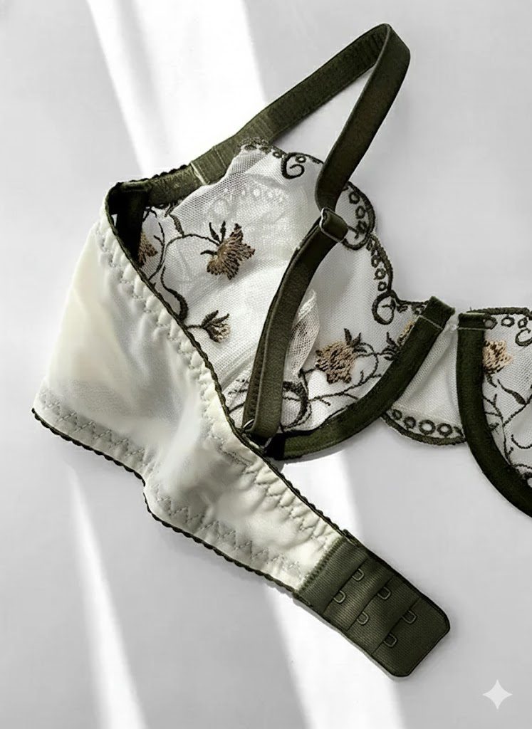 سوتین: رویه توری گیپوری، سه ردیف قزن، بند قابل تنظیم