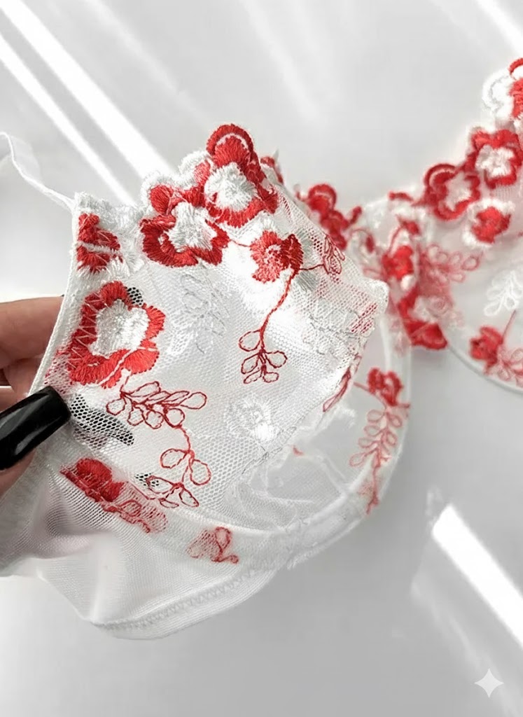 💰 قیمت و خرید ست شورت و سوتین توری گیپوری فنردار قرمز دانلا