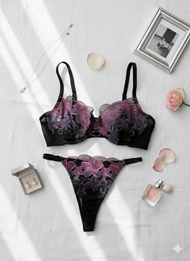 📏 راهنمای ست شورت و سوتین گیپوری مشکی صورتی دانلا