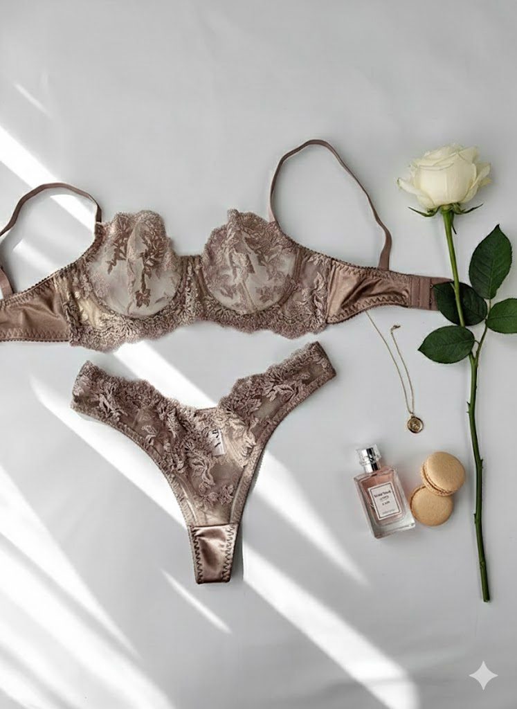 💰 قیمت و خرید ست شورت و سوتین توری گیپوری فنردار دانلا ژینا رنگ بژ