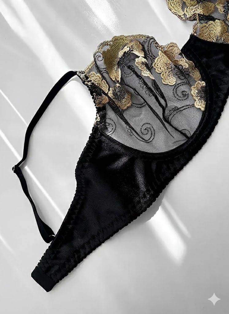 ست شورت و سوتین گیپوری فنردار دانلا رنگ مشکی طلایی کاپ سی