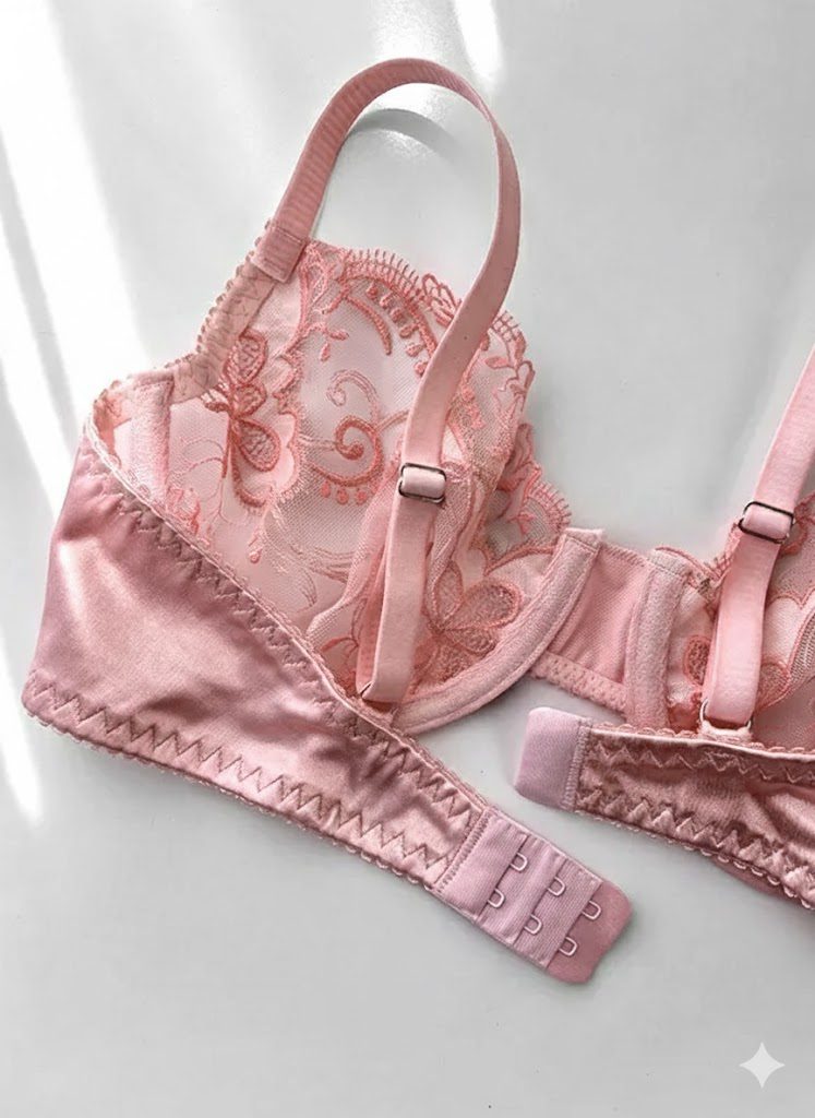 ست لباس زیر گیپوری فنردار دانلا رنگ صورتی کاپ سی دانلا