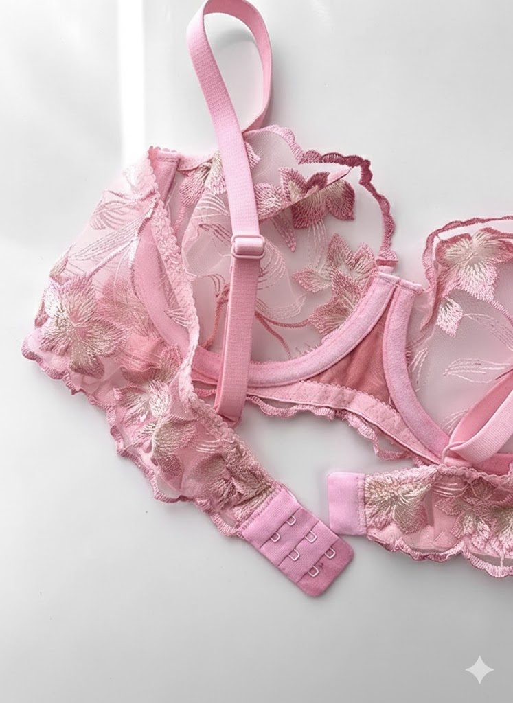 ست لباس زیر گیپوری فنردار دانلا رنگ صورتی گلدار
