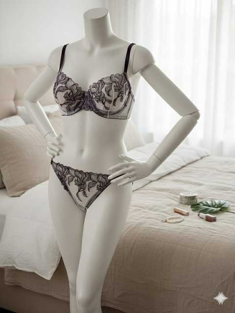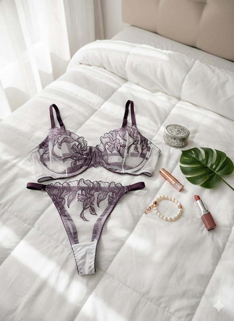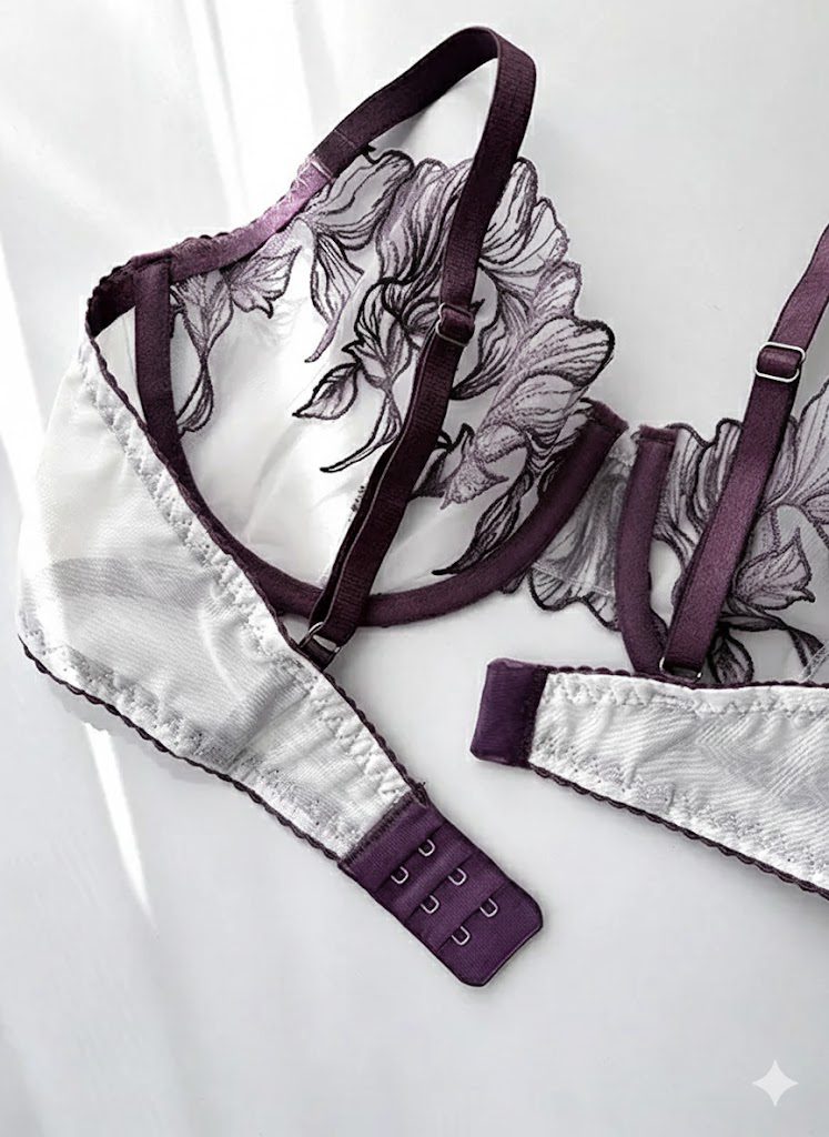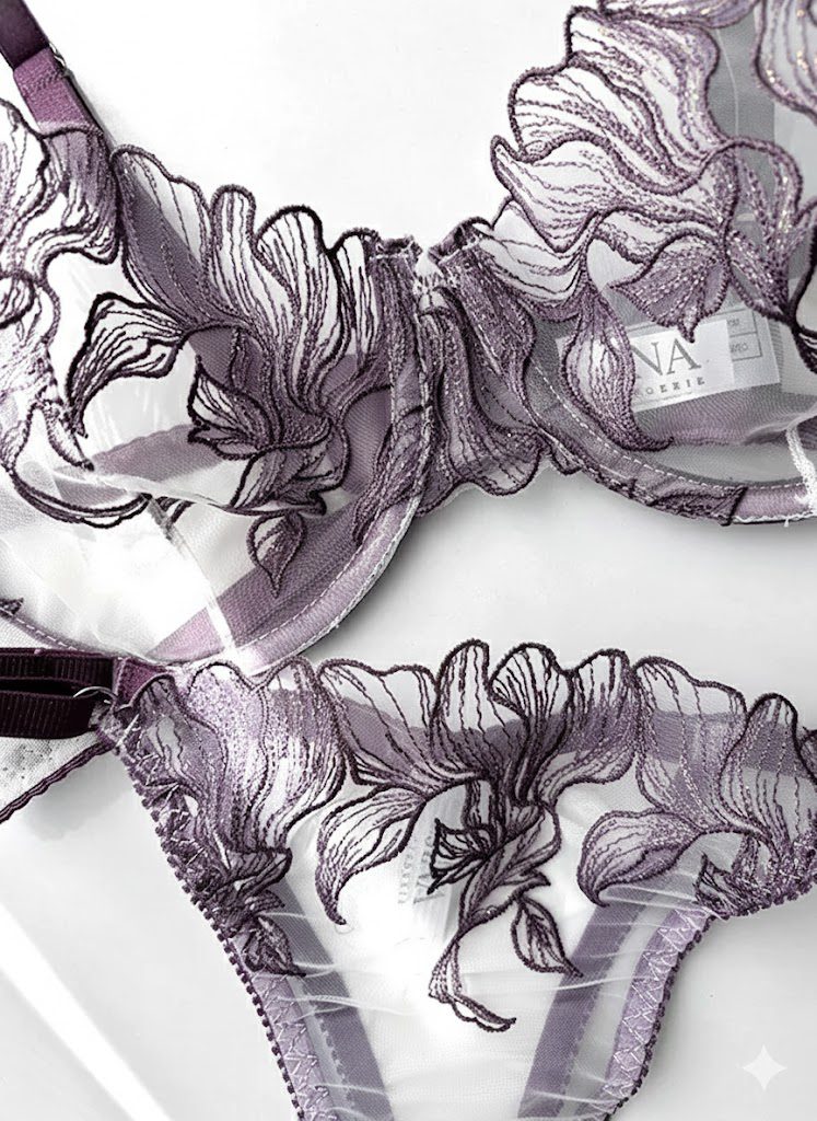 ست لباس زیر گیپوری فنردار دانلا رنگ بنفش کاپ سی دانلا