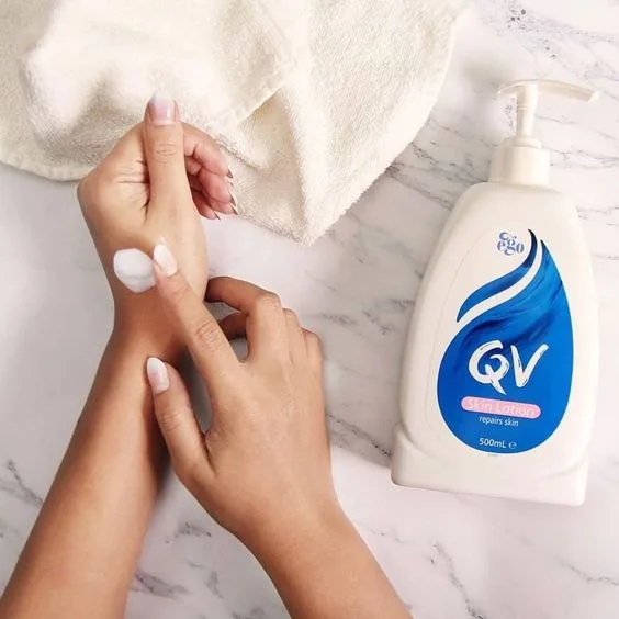 - کرم مرطوب کننده QV: این کرم مرطوب کننده با آبرسانی عمیق پوست، به رفع خشکی و التهابات پوستی کمک میکند.