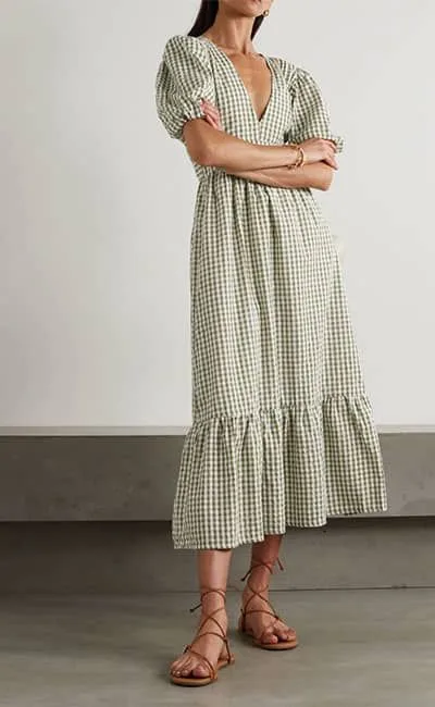 • پیراهن نخی گلدار: “در آغوش نرم این پیراهن نخی گلدار، روزهای گرم تابستان را خنک و دلنشین بگذران.”