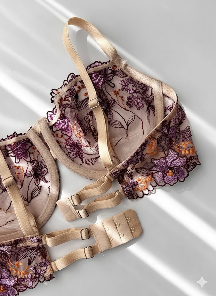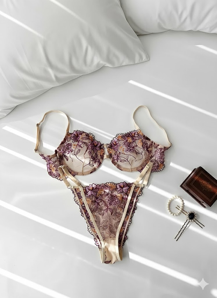 این ست گیپوری بنفش از برند دانلا با طراحی فنردار و پارچه گیپوری باکیفیت، فرم زیبا و خوشحالت به سینهها میدهد و اعتمادبهنفس شما را افزایش میدهد. طراحی ظریف، تنخور عالی و رنگ جذاب بنفش، این ست را به یک انتخاب شیک و محبوب تبدیل کرده است.