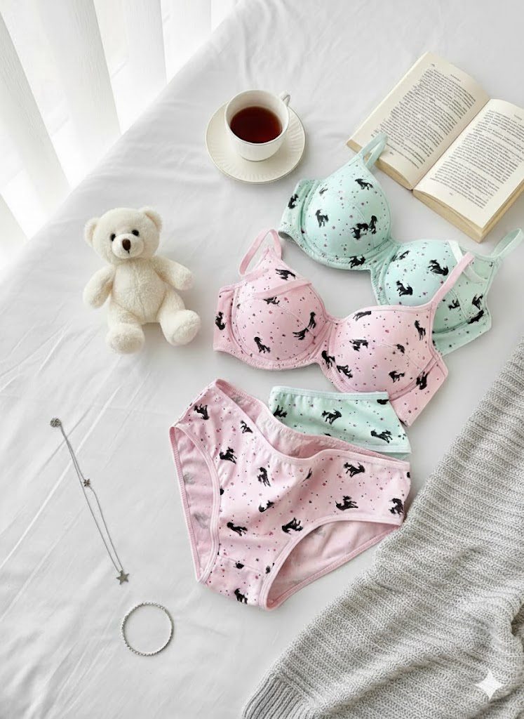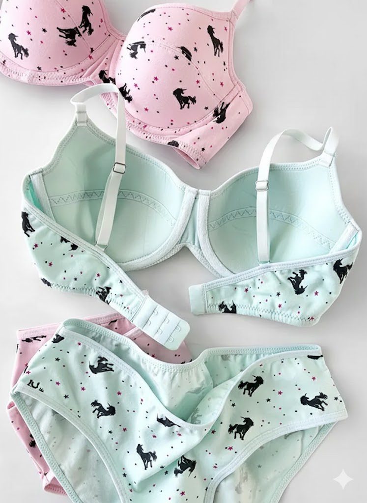 ست شورت و سوتین کاپدار نخی فنردار دانلا مدل یونیکورن