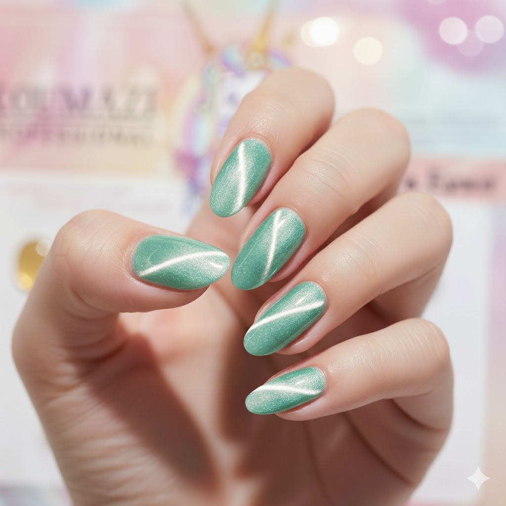 با کمک مگنت مخصوص، میتوانید خطوط نوری جذابی روی ناخنها خلق کنید که در هر زاویه میدرخشند.